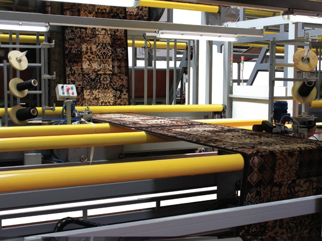 Makina sayesinde 4 - 5 metre enindeki halılar ve ensiz dokunan yolluklar, PLC sistem ile kontrollü olarak overlok edilir.