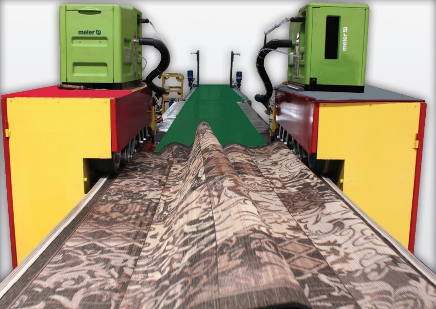 Halının kenarı, eritilen plastik granül hammaddesi ile presli olarak katlanıp yapıştırılır. Ayrıca konveyör yapıştırma makinası ile bağlantılı veya bağlantısız, PLC hız kontrollü olarak çalışır.